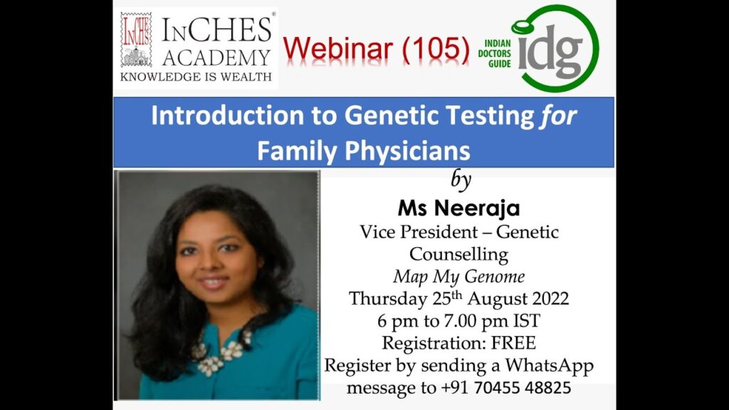 Webinar 105 – Introduction to Genetic Testing for Family Physicians by Ms Neeraja from Map My Genome